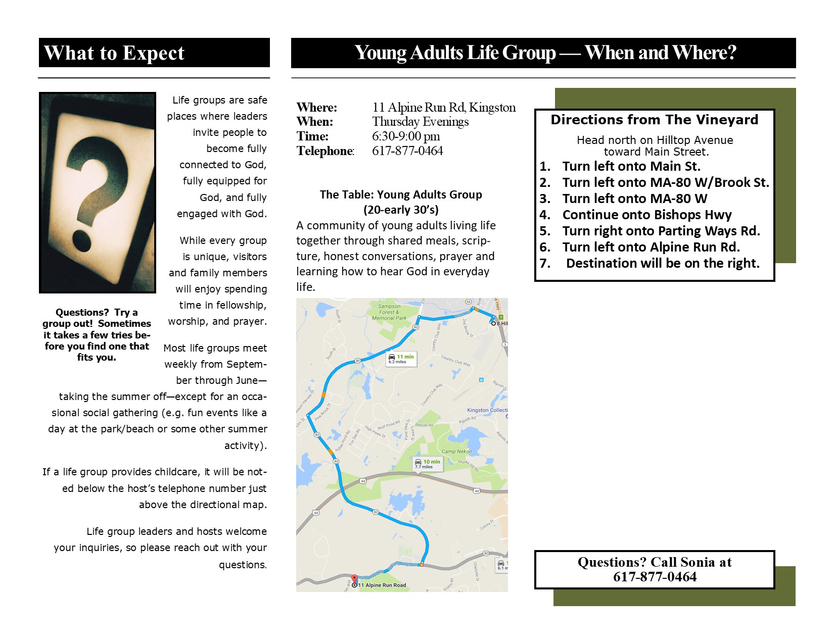 A Community of young adults living life together through shared meals, scripture, honest conversations, prayer and learning how to hear God in everyday life.
